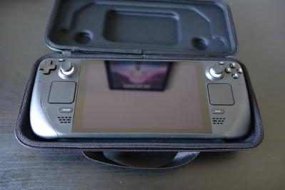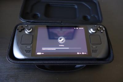 Taking the sleeve off, we see the Deck itself in a case and a box on the left, assumably carrying the charging cable. Let's see the box.