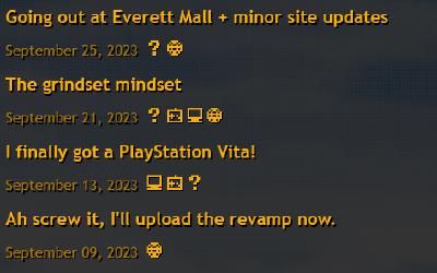 My idea was to primarily have it work on the PSP, maybe the DS, but that's honestly another can of worms, so it's more of a bonus. I will be building the site around PSP compatibility, but I also want to try to aim for browsers on Windows XP, and I don't mean modern Firefox from a few years back, I mean like IE 6 and stuff like that. I think it will be doable, and I honestly won't be too strict on if it works there or not, since like I said, I'm mainly aiming for the PSP. However, it will be a while before I get started on it since as of writing, I am LEAVING FOR JAPAN TOMORRROW!!!!!