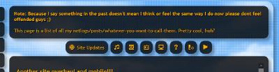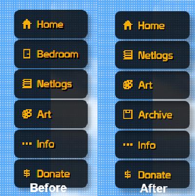 Some may also notice the absense of the "Bedroom" button on the sidebar. I have kind of given up on it, it was kind of cool, but I haven't updated it in so long since keeping up with it is really tedious, plus for the mobile layout, it just wouldn't work, so I've created a new section on my site called the "Archive", which hosts whatever abandoned works I have made in the past. I don't know how much will be added to it, but yeah.
