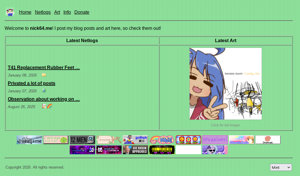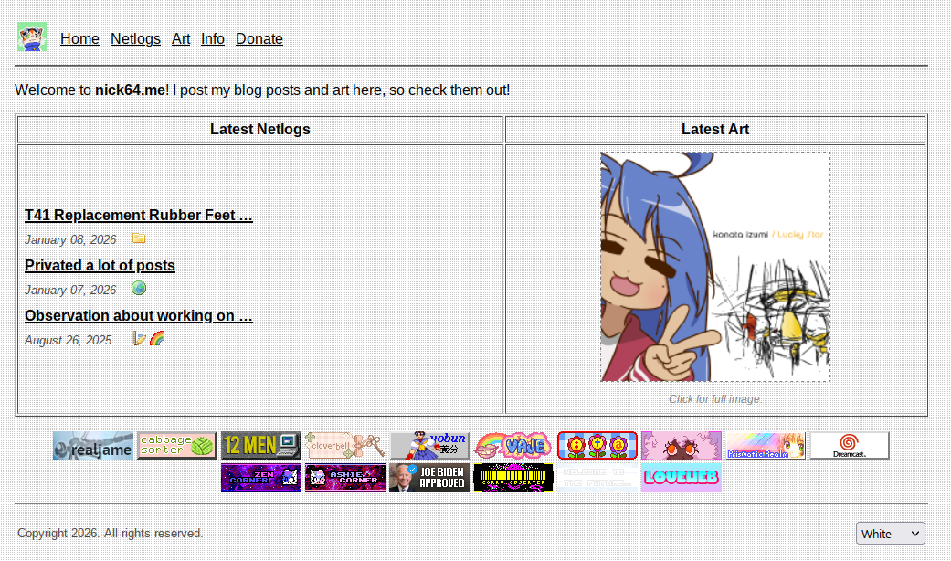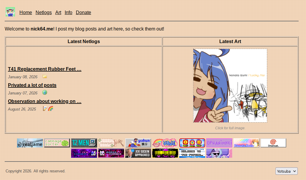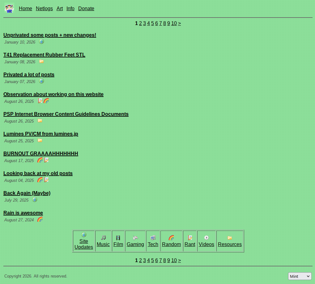 Update from my last site update post, I went through my old posts and unprivated a pretty big chunk of them. Some of them, I've decided to keep private and don't plan on bringing them back (but hey i mean the internet archive exists, so i wont stop you i guess).